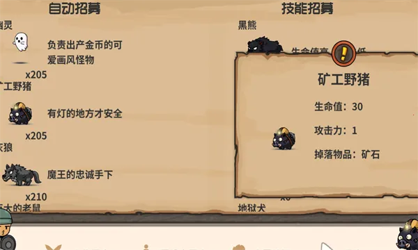 2、游戏主要操作是手动点击魔王技能,不然冒险者会冲破迷宫防线。