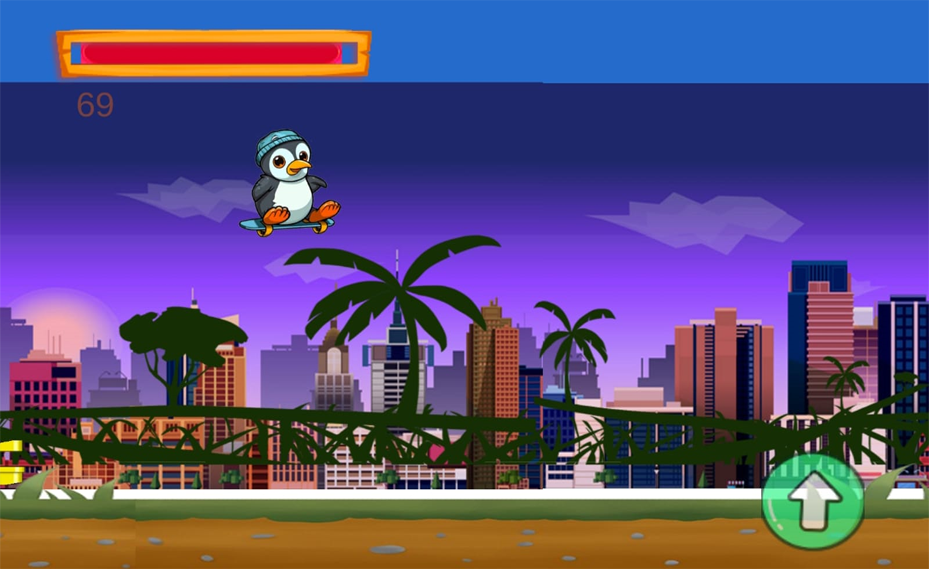 这是一款 2D 无尽游戏,玩家主要任务是帮助可爱企鹅跳过不同障碍物。