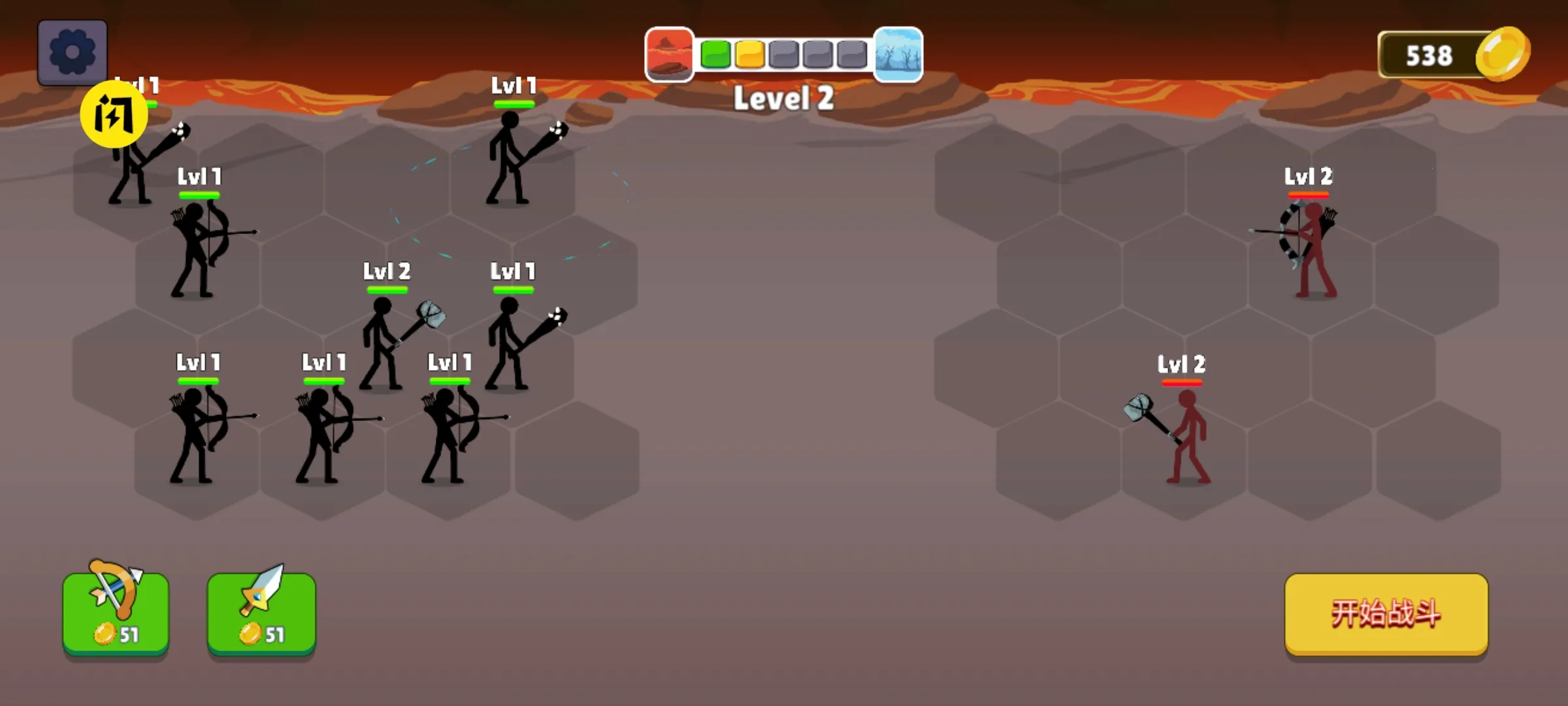 2. 简单却具挑战:通过想出多样计划合并棍棒人,击败对手,成为最强。