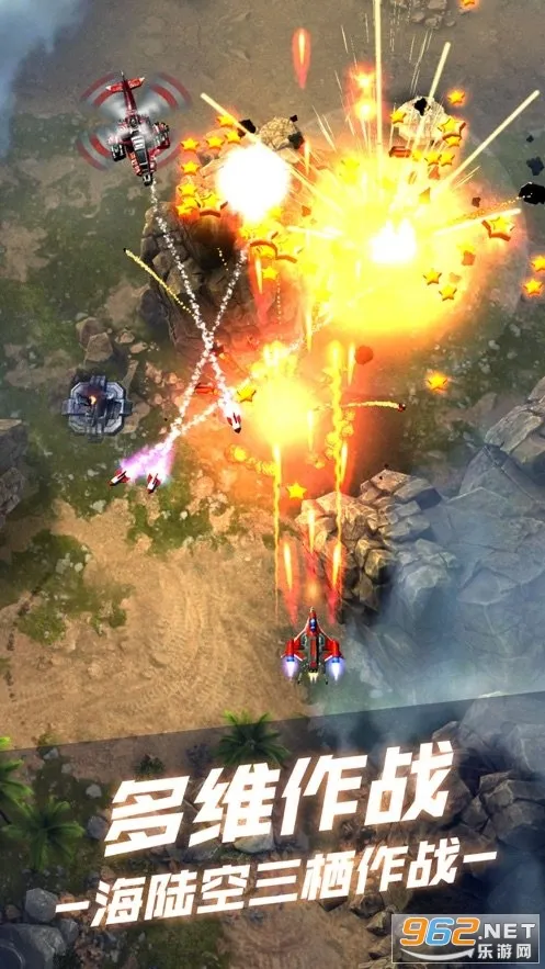 3、多样化战斗方式:玩家可以自由组合不同攻击方式,使用各种武器装备战机,还有超炫全屏必杀等。