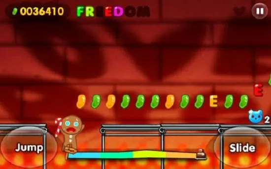 1、姜饼人大逃亡2是一款横版卡通逃亡竞速跑酷游戏,玩家操作姜饼人不停奔跑,躲避诸多障碍。