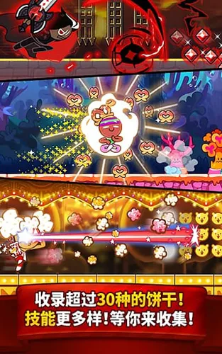 2、游戏有多种特色玩法,如利用跑跳滑行,操控主角吃果冻闪躲障碍物,搜集200多种饼干宠物,升级宠物宝物创造高分。