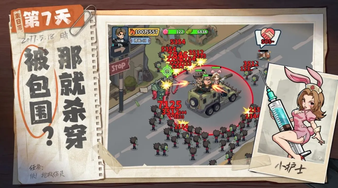 1、在满是丧尸的世界战斗,解救更多幸存者,壮大幸存者小队,重新打造安全基地。