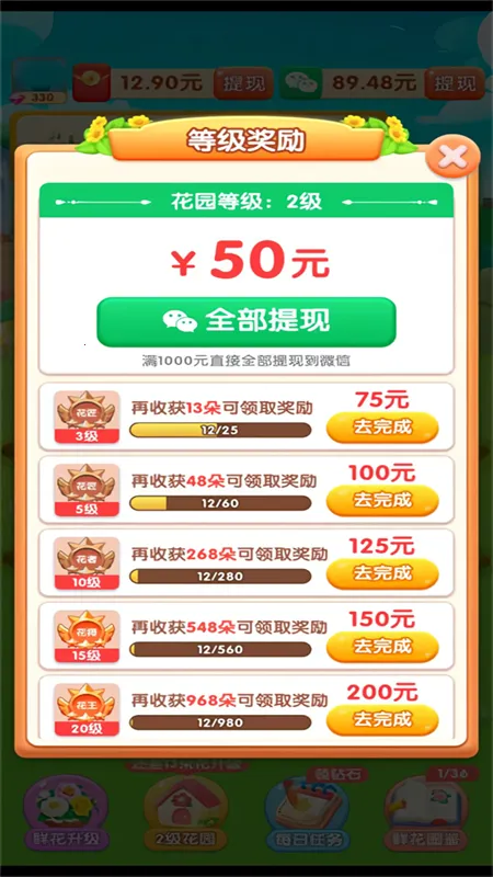 嘿,想知道春天花园二手房价格吗?咱这有个超棒的办法!就拿春天花园红包版游戏来说,它虽不是直接查房价的软件,但能给你带来不少乐趣和收获呢。在游戏里,你能在自己的田地里种植各种特色花朵,每次收获就能领取红包。玩法简单易懂,按时浇水施肥就能开出美丽花儿,稀有花朵奖励更丰厚。还能解锁花朵图鉴丰富花园,完成订单、改造花园规划增加收益,每日刷新任务领钻石和红包。这不仅能让你在闲暇时享受种植的乐趣,仿佛置身于美丽花园,还能轻松赚零花钱,红包能直接提现到微信哦。虽然不是查春天花园二手房价格的工具,但这种休闲又能获利的游戏体验,说不定能让你心情愉悦,还收获满满呢,快来试试吧!