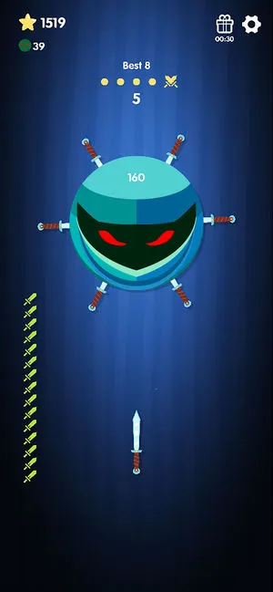4. 全程单指操控,轻触拖拽释放一气呵成,适配碎片化时间体验,新手3秒上手,高手可追求极致连击,还支持实时成绩分享与好友比拼,全球排行榜见证谁是真正的飞刀大师。
