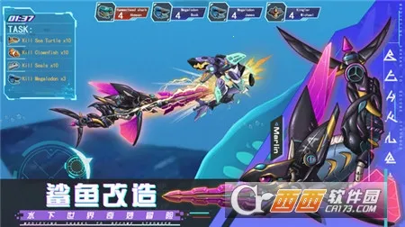 2、超高自由度的机械鲨定制系统,从钛合金尾鳍到等离子喷射背鳍,每处部件都影响移动逻辑与战斗风格。