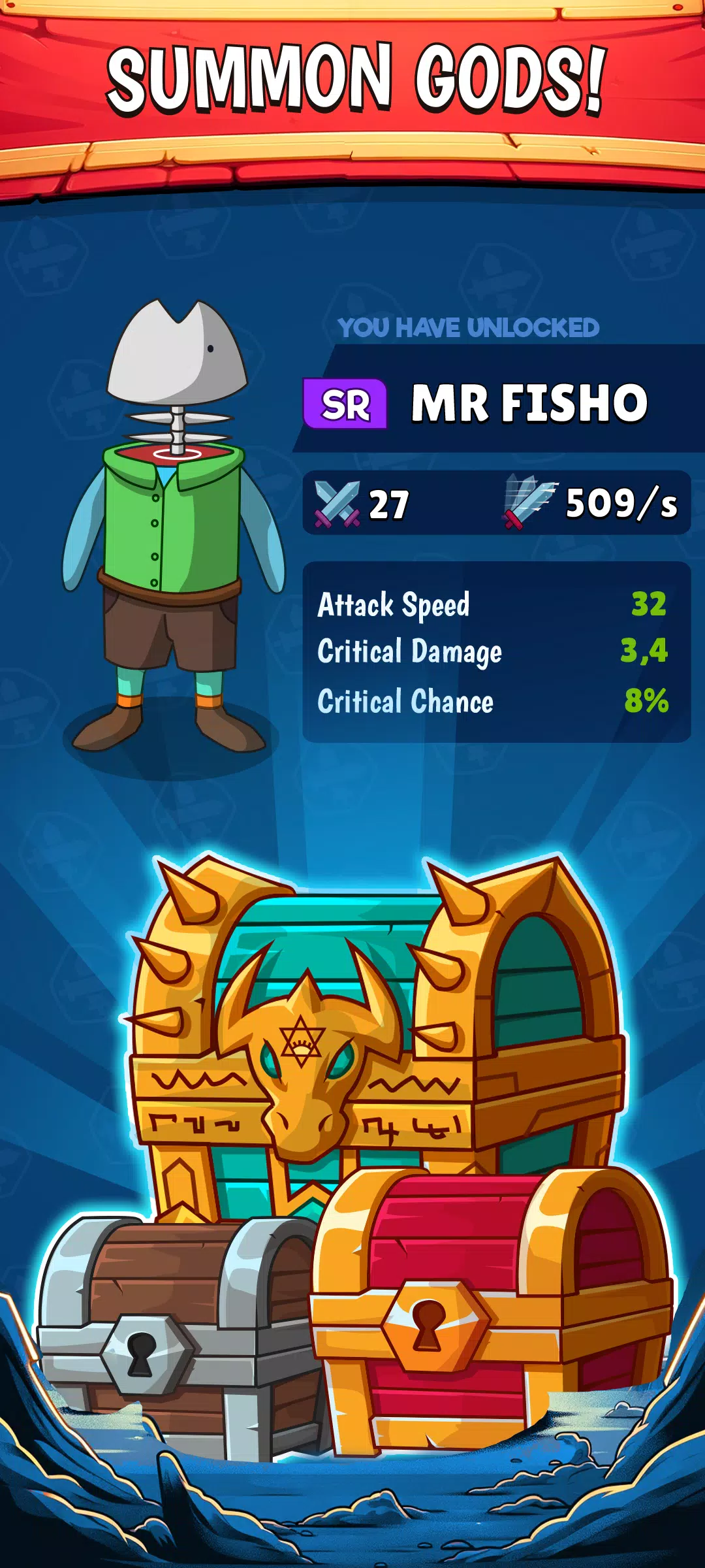 3、开启宝箱召唤不同等级英雄,收集超3000种升级打造传奇英雄。