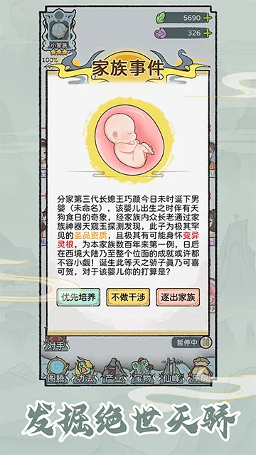 3. 设有修仙、经商、联姻等多种玩法,每一种玩法都会影响家族的兴衰。