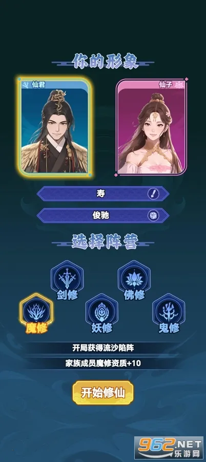 修仙世家2026官方最新版本是一款以修仙为主题的家族模拟游戏。玩家将执掌修仙家族,从创建角色开始,历经自定义字辈、挑选图腾等,通过双修育后、资源管理、指派任务等,发展家族,多条路径可选,充满随机与挑战。
