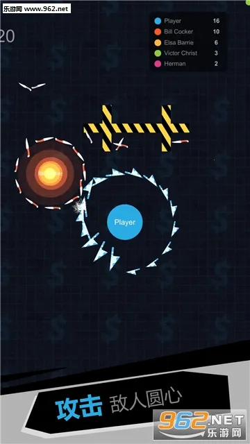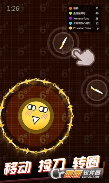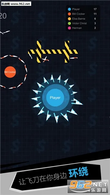 1. 玩家能通过灵活移动来收集飞刀,增强自身实力,摁住屏幕可移动防御,松开即开展攻击,击败飞刀少的对手就能夺取其飞刀壮大自己。