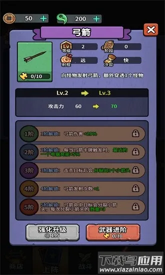 3、局内可合成提升卡牌等级,部分武器升至最高级能合成终极武器,助力对抗强敌。