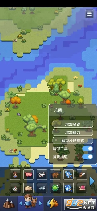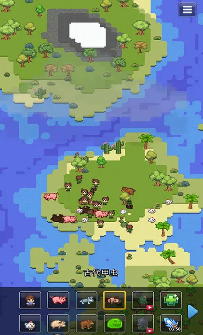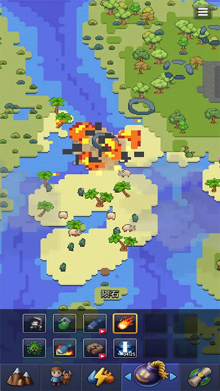 3. 高质量像素图:改进的图形和用户友好的精心设计的界面,能一键创建海洋、岛屿和大洲,也能借助自然灾害或武器来摧毁世界。