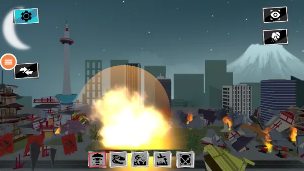 它有丰富多样的武器,像炸弹、导弹等,你可以自由选择并针对城市不同目标精准打击,比如投掷炸弹能瞬间夷平高楼。还能依据战场形势灵活搭配武器,创造独特攻击效果,像召唤龙卷风卷起飞舞的路灯后再用导弹轰炸周边。随着游戏推进,虽挑战增多,但能让你不断调整策略。