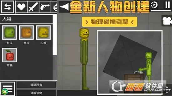 1. 拥有高自由度玩法,可操控可爱甜瓜小人,施展攻击、撕裂、刺伤、射击等多种操作,尽情探索充满自由与创想的世界。