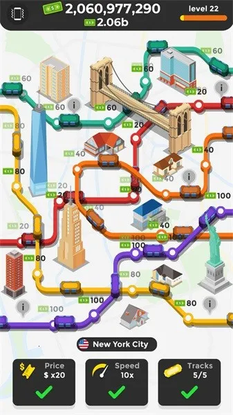 1. 玩家可经营地铁线路,通过盈利解锁更多线路,在各地区开设地铁。