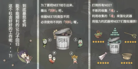 4、画面中各种形象设计独特,像丑陋的NEET等,增添了游戏的趣味性。