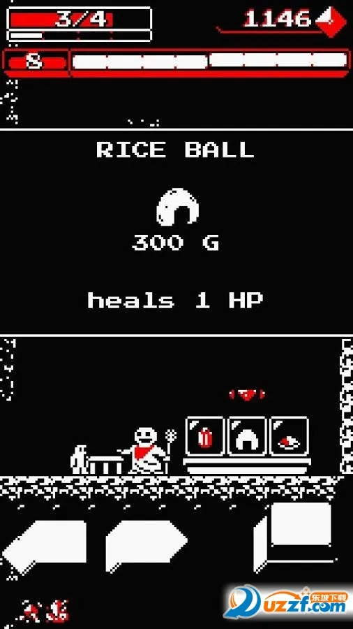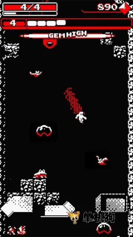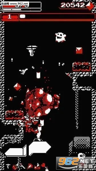1、踏上深渊探险之旅,随重力牵引在深井中不断下滑,抵御青蛙等像素化生物攻击。