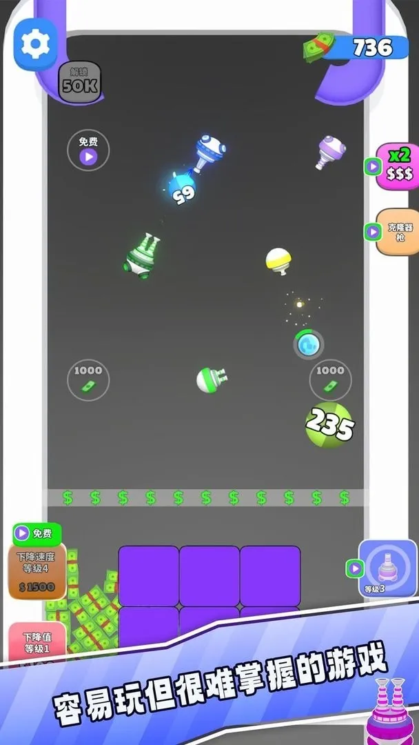 3. 以弹球闯关为主题,玩家控制小球在不断变化的平台上持续前进,小球跳跃中会出现各类障碍物,考验即时判断与连锁反应能力。