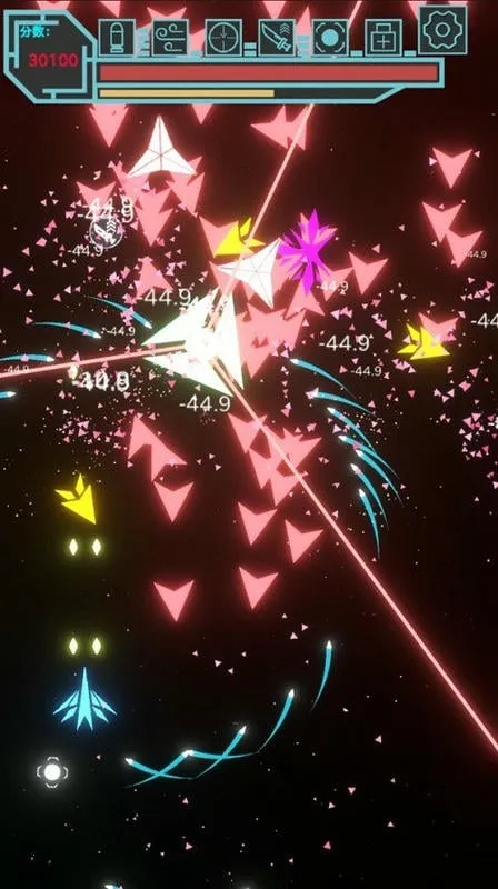 1、玩家操控个性化战机穿梭于霓虹辉映的深空战场,能精准规避弹幕并歼灭敌机,节奏紧凑反馈爽快。