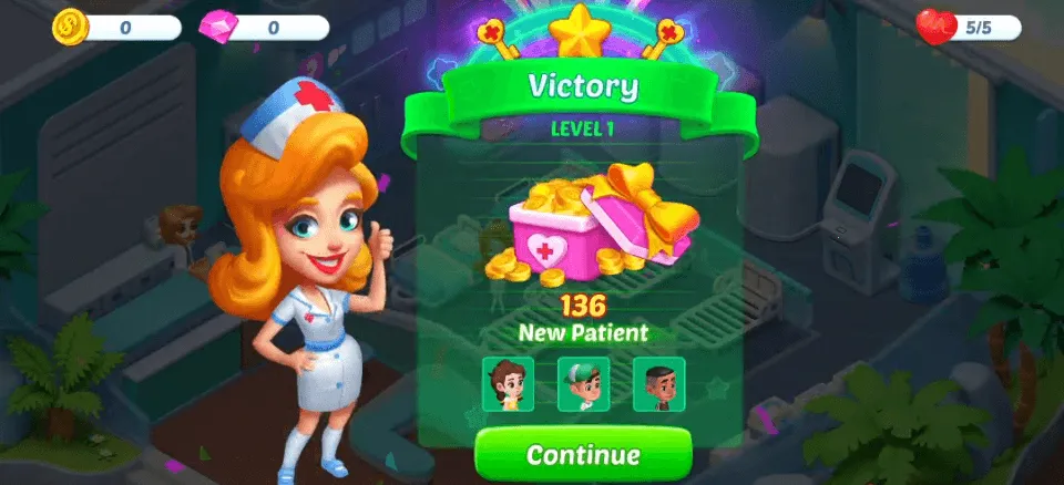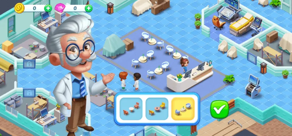 2. 经营医院打造医疗团队:除护理外,要摆设科室、装饰装潢,招揽医生和护士,打造专业医疗团队,通过治疗病人赚取金币,解锁更多游戏场景。