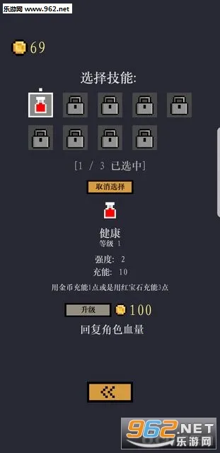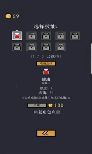 3、丰富技能升级:选择要玩的角色后可挑选3个技能并对其升级,增强角色战斗能力。