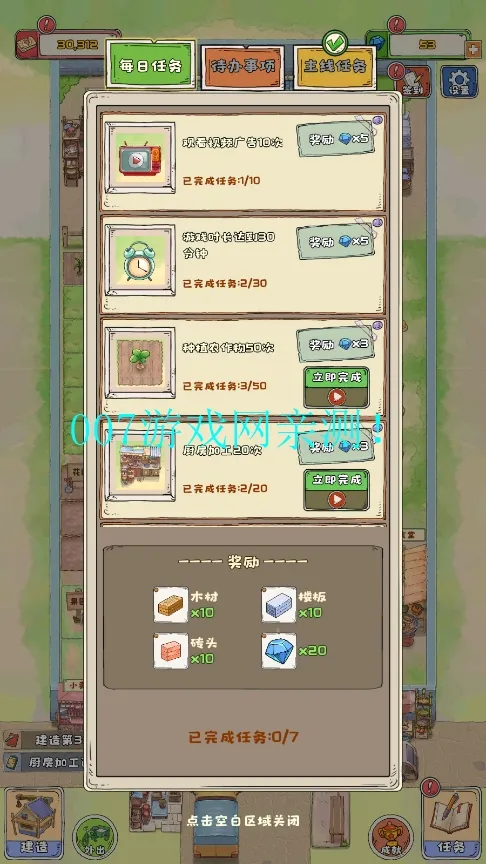 3、游戏提供众多个性化主题,数十种地面、围墙等场景供玩家自由搭配,打造专属小院。通过完成主线、待办、每日任务及成就系统可获取钻石等资源。