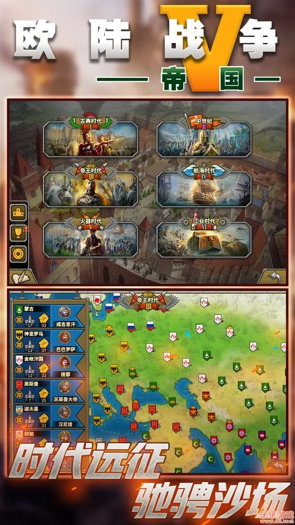 2、六个时代跨越与广阔版图探索:可跨越六个时代,历经2000年历史。能探索各种任务,扩大自己的版图,在各个时代征服欧洲大陆。