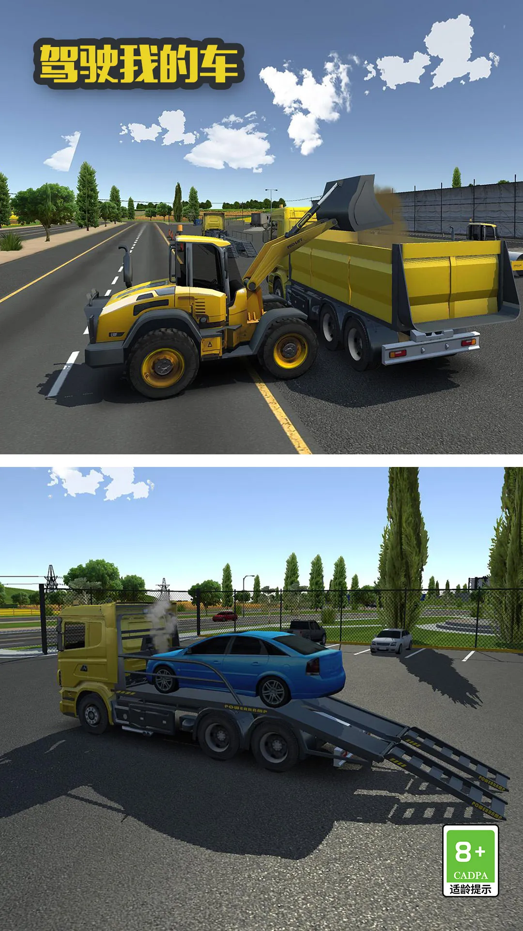 1、驾驶我的车最新手机版是一款模拟驾驶游戏,提供多种工程车辆,如卡车、挖掘机、油罐车和吊车等,玩家可驾驶它们完成各类建设任务,包括建造桥梁、道路、建筑物,运输货物以及修复损坏车辆。