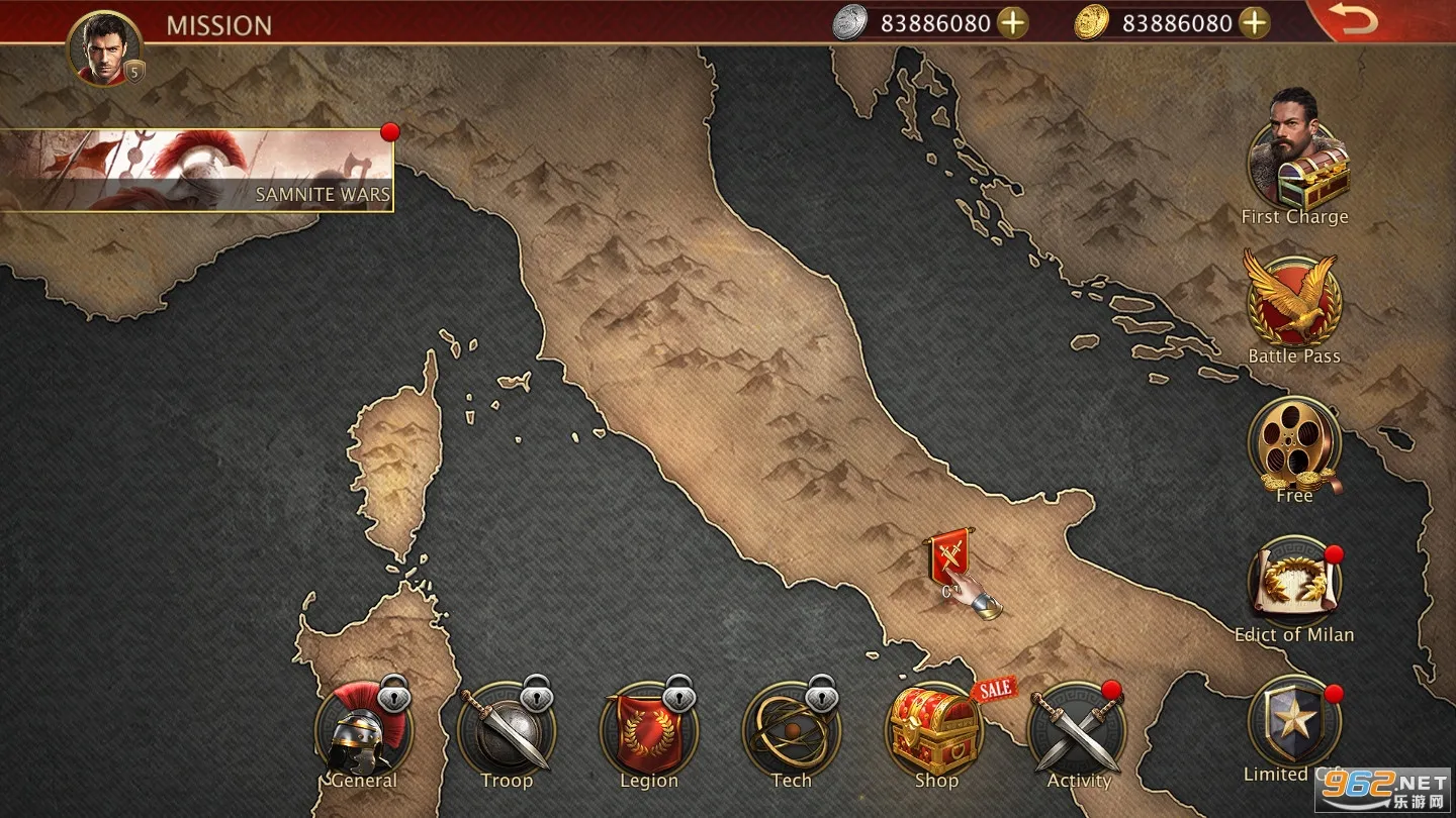 1. 游戏以古罗马时期为故事背景,玩家带领队伍开拓领土、保卫人民安全,在战火纷飞年代体验策略战争。