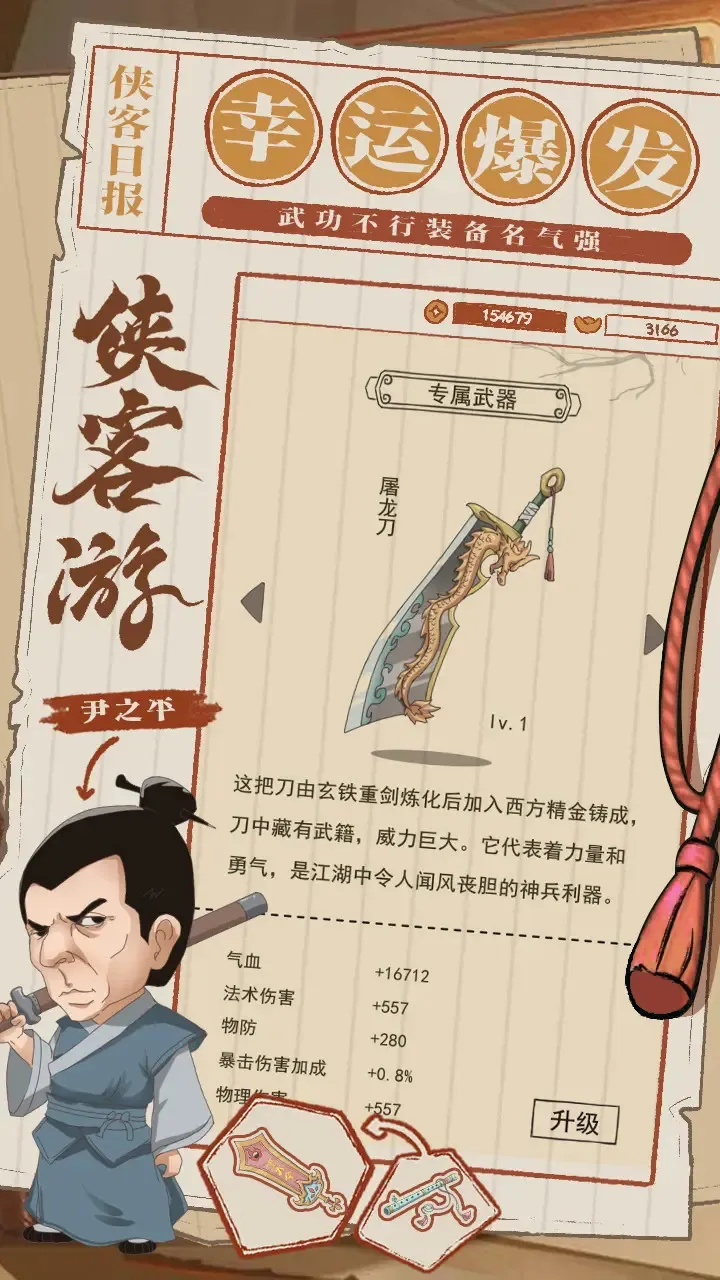 侠客游是一款武侠养成手游,故事设定在云隐国,黑暗势力幽冥教崛起致江湖动荡。玩家化身少侠讨伐,玩法多样,有剧情、副本等。特色是全自由世界、丰富体系等,亮点有福利、强化系统等,更新日志记录新活动等内容。