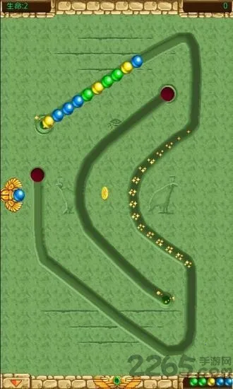 2. 游戏延续经典祖玛玩法,玩家控制发射器发射不同颜色石球,三个或更多相同颜色石球相连触发特效得分,考验玩家策略。
