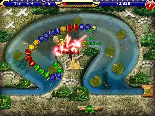 埃及祖玛正版手游以古老埃及文明为背景,延续经典祖玛消除玩法。玩家控制发射器发射小球消除同色相连珠子,有解谜、街机两种模式,关卡多样,还有特殊道具,能与其他玩家排行榜竞争,带你重温童年乐趣。