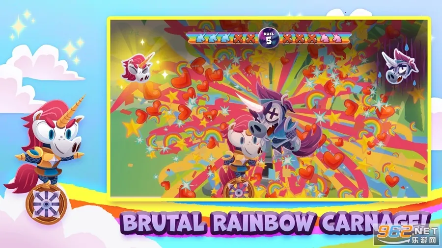 1. 玩家将化身独角兽,骑着独轮车与其他独角兽展开激烈对战,需利用技巧躲避障碍并击败敌人。