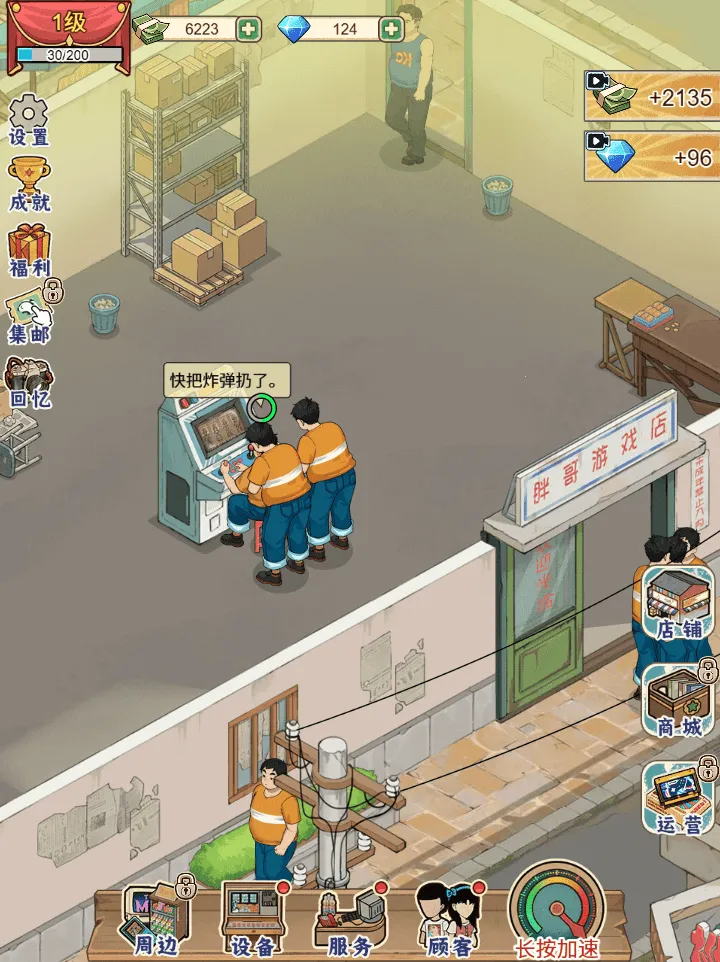 胖哥游戏店内置 GM 菜单安卓版手机版,带你穿越回 90 年代老城区巷弄的游戏店。化身胖哥与老板娘守店,体验经营日常,解锁年代印记,壮大铺子版图,感受人情冷暖,续写属于你的经营故事。