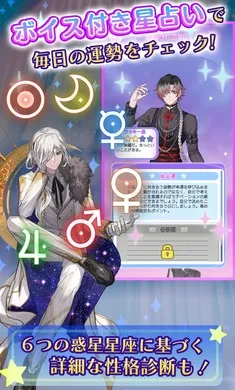 《我的挚爱之星:闪耀之日日服版》是一款星座王子换装游戏。与十二位由日本声优演绎的王子共度时光,有部分语音星座运势、互动功能、日记填写、王子换装等内容,带你进入奇幻世界,开启闪耀之旅。
