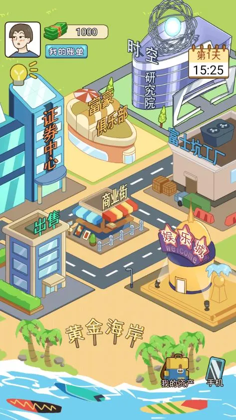 2、游戏设置多个城市,玩家能在不同城市投资经营,发展商业帝国,投资各行各业,积累财富,还能选择不同职业角色体验多样游戏感受。