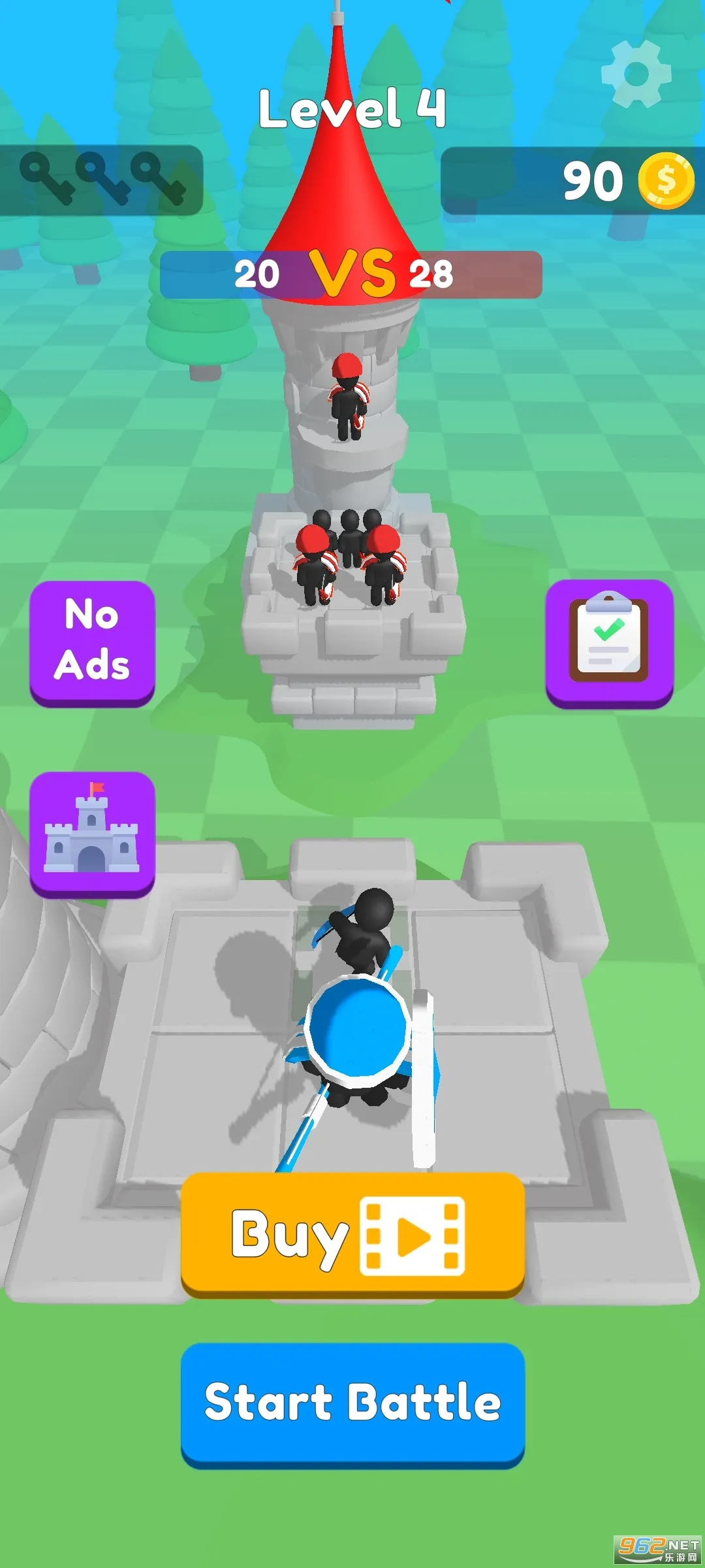 2. 招募士兵并扩建高塔,相同士兵能融合升级,提升攻击能力。