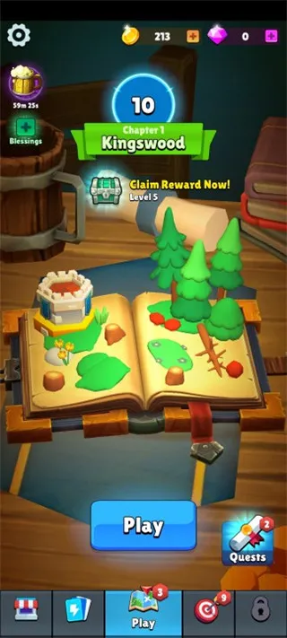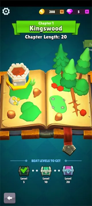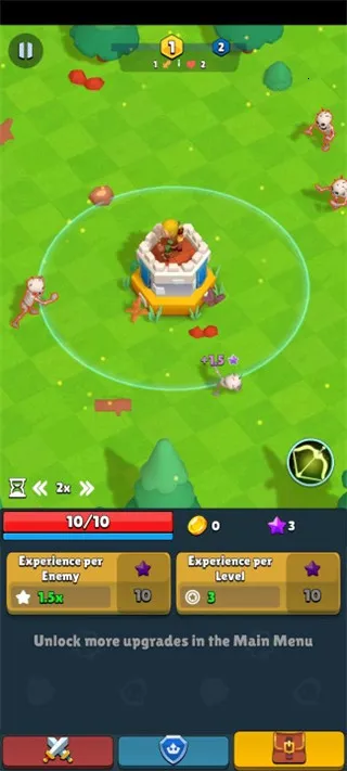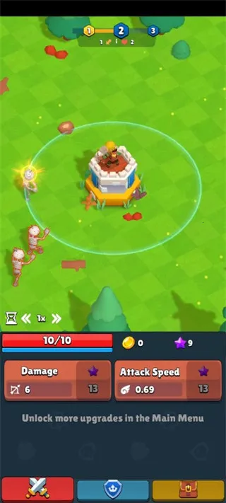 2、采用增量式玩法,收集战利品卡片,升级塔和弓箭手提升战力,这是在游戏世界生存的关键。