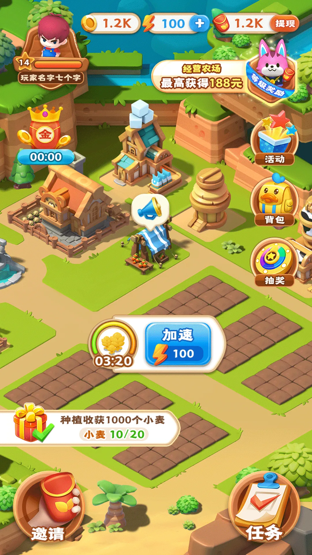 1、画风趣味卡通,提供轻松愉快经营玩法与个性化农场养成体验