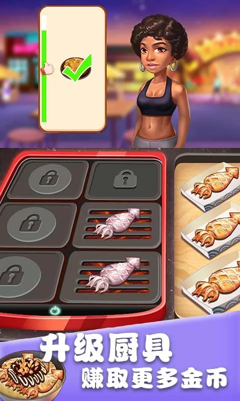 2、通过不断提高小吃街等级,解锁更多高级食谱,烹饪出美味佳肴。