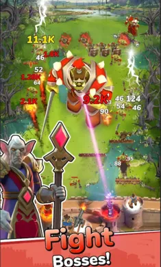 2、联合传奇英雄并肩作战,组建军团,与矮人、精灵等盟友共同击退邪恶,强化英雄并升级防御。