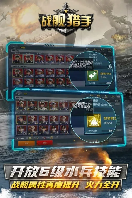 3、有着丰富的作战系统,包括水兵系统、转职业系统等,触发式水兵技能可提升战斗体验,各舰种相互配合,协同作战。