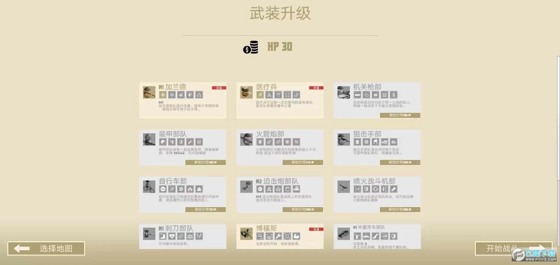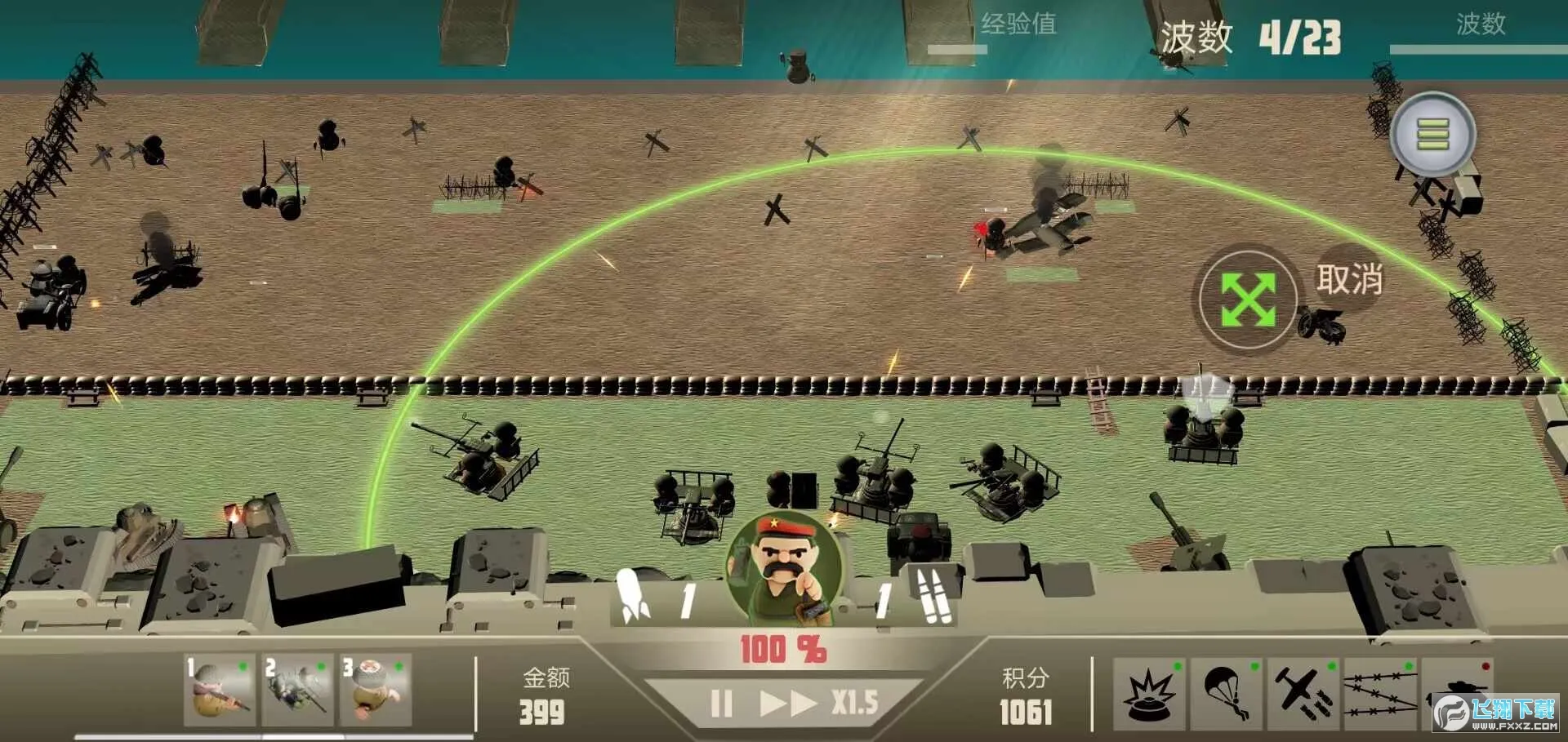 3、独特游戏体验:涵盖多种级别、被动和主动技能,每轮可选择不同部队类型,随进度开放升级道具,能依战争形势排兵布阵。
