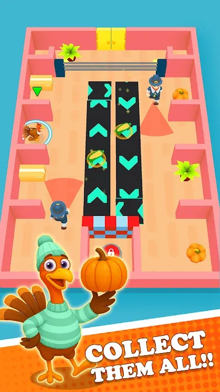 1. 玩家化身聪明勇敢的火鸡,在充满挑战的农场环境开启感恩节冒险,穿越复杂迷宫,破解难题求生存,体验快乐与紧张并存的逃亡。
