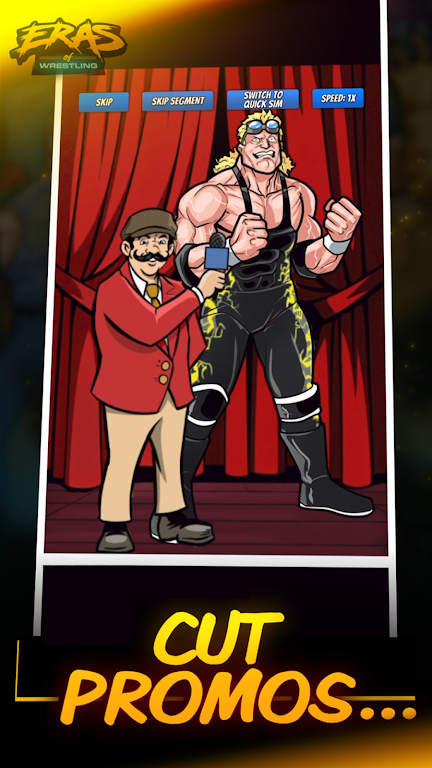 2. 在多个经典摔跤时代设定中制定战略,探索领地时代、狂热时代、次世代时代、极限时代和千禧年时代,体验摔跤文化变迁与发展,收获不同成就荣誉。