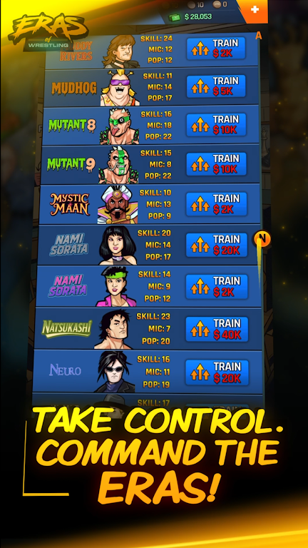 3. 有机会创建和自定义受经典摔跤人物启发的原创角色,每个角色有独特属性、技能和特质,设计丰富特点确保在比赛中表现出色。