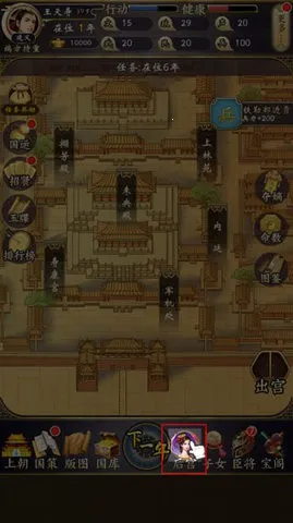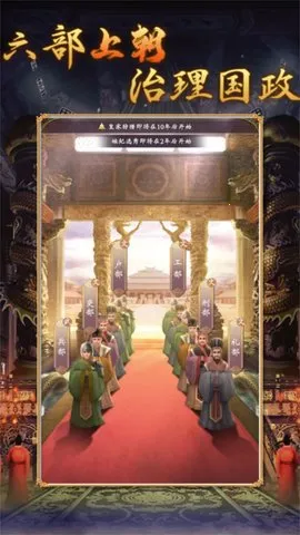 2、首先是上朝,随机点击兵部、礼部等上书奏折,根据选择来获取/减少声望、政务。