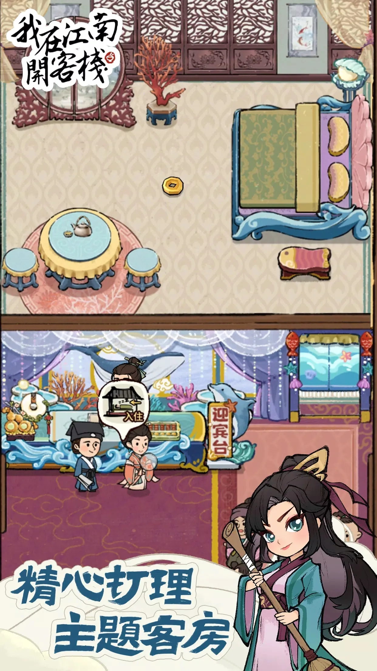 我在江南开客栈免广告无限金币版是一款以古代江南为背景的客栈模拟经营手游。已破解广告,资源无限。可随心打造客栈,统筹运营,解锁趣味内容。从破败小店起步,扩建名栈,在经营中感受江南魅力与市井烟火。