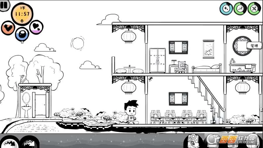 1、《众生游2025最新版本》是边境工作室开发的模拟经营游戏,以二维黑白简笔画风格呈现,带来纯粹简单的视觉享受。游戏背景设定在黑白世界,真实模拟社会环境与生活状态,融入各种随机事件。