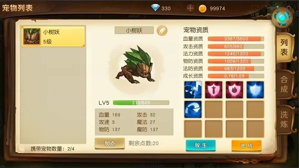 3、多元合成:有宝宝合成、装备洗练等多种合成机制。宝宝合成技能随机保留,装备洗练有多种属性可提升战力,还有丰富的制作材料获取途径。